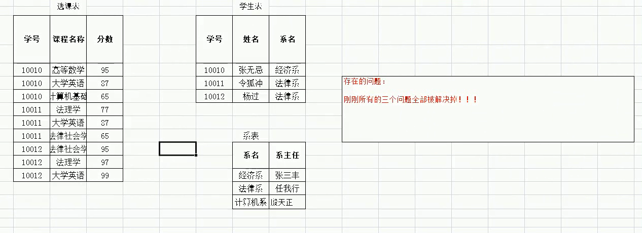 函数依赖:属性组确定唯一值:学号,课程名称–>分数
