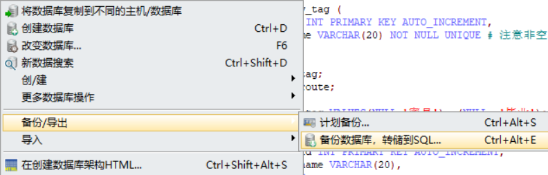mysqldump -uroot -proot db1 > d://a.sql
